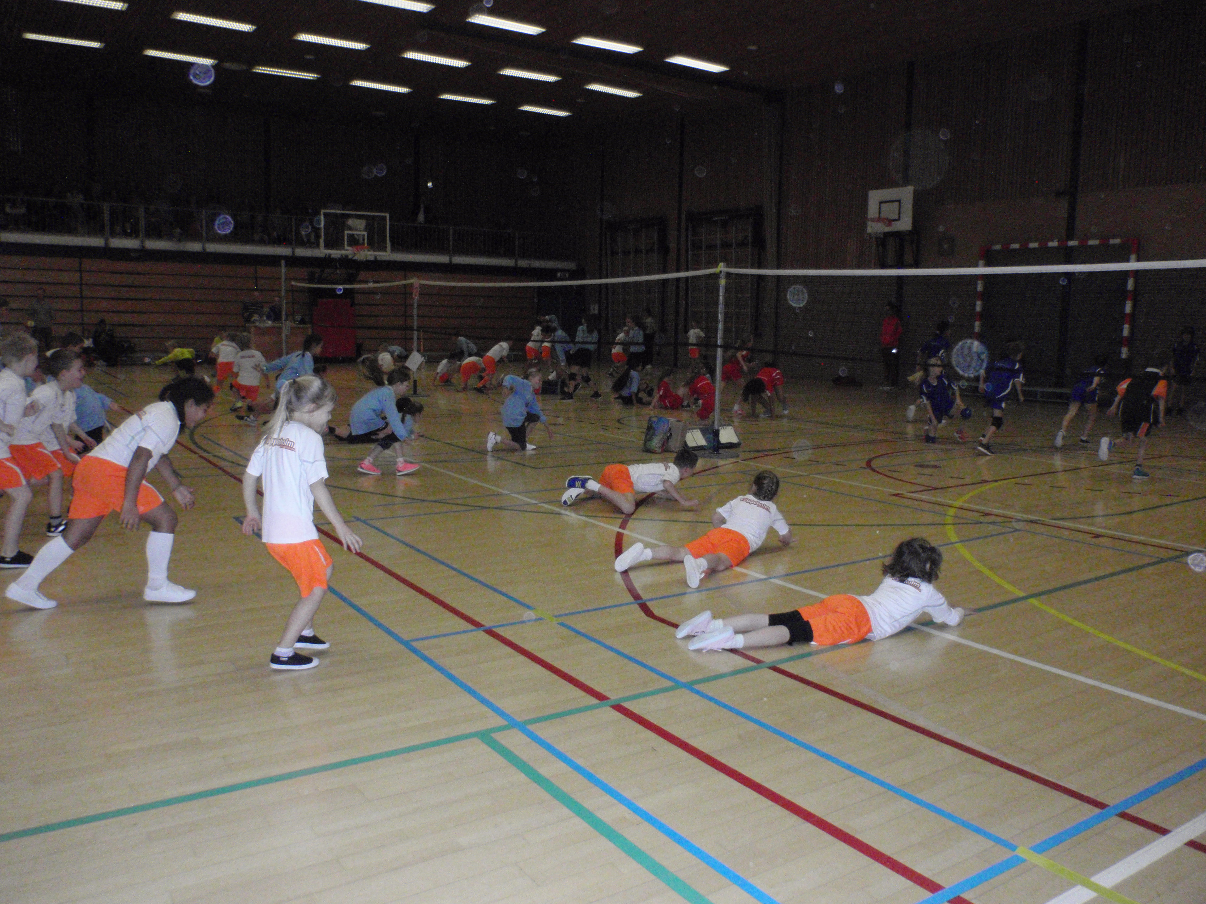 Na een gezamenlijke warming up en uitleg van de niveaus konden we beginnen. Er werd gespeeld op niveau 1 door groep 3, niveau 2 door groep 4 en 5, niveau 3 door groep 6 en niveau 4 door groep 7 en 8.